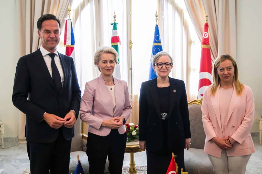 Vlády unijních zemí se pod tlakem souvisejícím s přílivem migrantů do Evropy minulý týden dohodly na krocích vedoucích k urychlenému návratu migrantů do zemí jejich původu nebo tranzitních zemí, které jsou považovány za „bezpečné“. Mezi ně patří i Tunisko. Italská premiérka byla v Tunisku za poslední týden již podruhé. S prezidentem Saídem se setkala i v úterý.