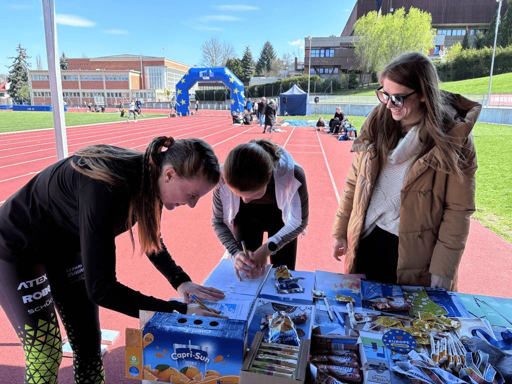 Včera, 9.4.2025, se na atletickém stadionu ve Zlíně konal Juniorský maraton 2025, štafetový závod určený pro středoškoláky. Akce, která přilákala desítky mladých běžců, byla nejen sportovním zážitkem, ale také příležitostí k získání cenných informací o možnostech, které Evropská unie mladým lidem nabízí. na místě byly přítomny instituce jako Eurocentrum Zlín, zástupci DZS Zlín a Europe Direct Kroměříž, kteří návštěvníkům poskytovali informace o studiu, práci a cestování v rámci EU.