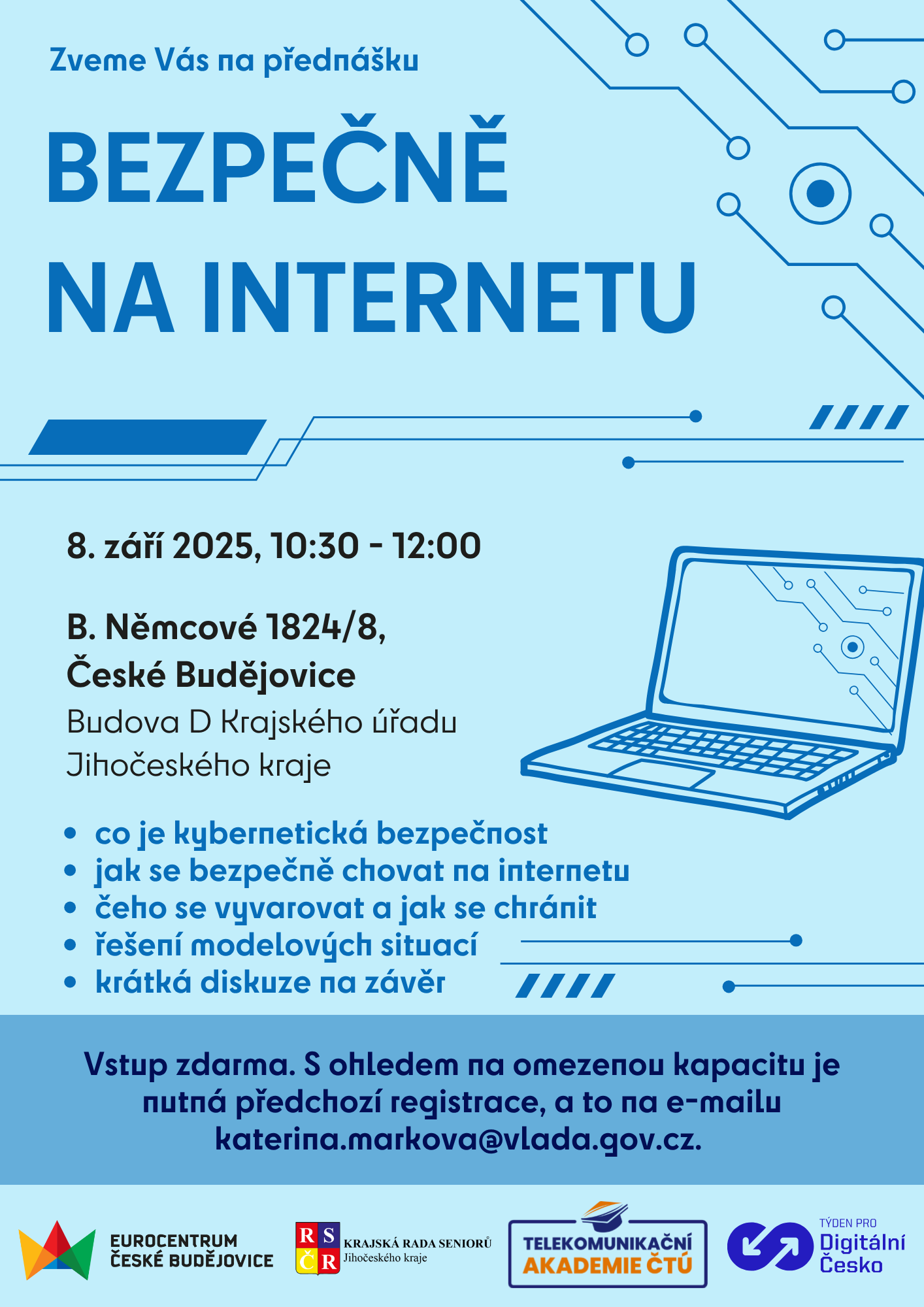 Zveme především seniory na přednášku o bezpečnosti na internetu.