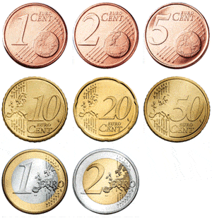 Euromince mají 8 nominálních hodnot: 1 eurocent, 2 eurocenty, 5 eurocentů, 10 eurocentů, 20 eurocentů, 50 eurocentů, 1 euro a 2 eura.