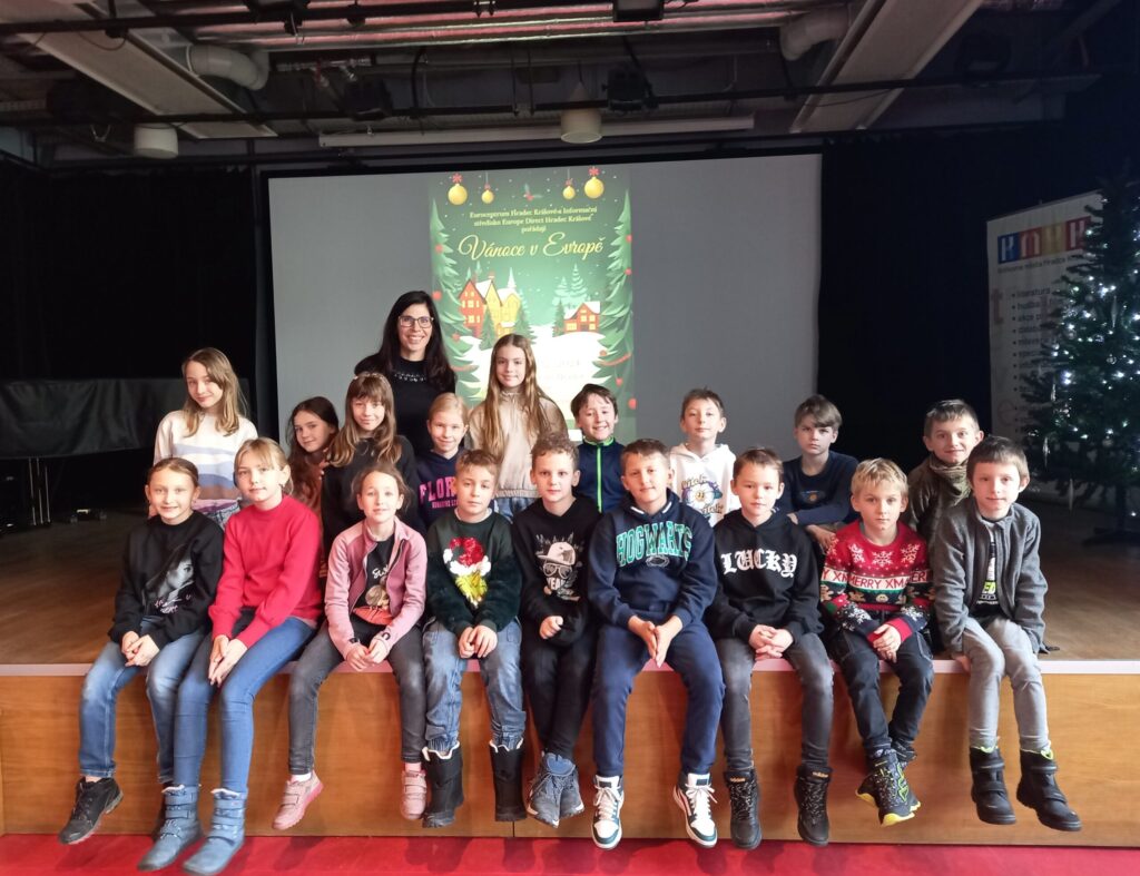 V Knihovně města Hradce Králové čekalo na děti několik stanovišť s úkoly, kde se dozvěděly o tom, jak se slaví Vánoce v různých evropských zemích. Žáci tak, podle norské pověry, hledali schované koště, naučili se přání veselých Vánoc v jiných jazycích, poznali typickou vánoční ozdobu z Bulharska, tzv. survačku, poslechli si evropské vánoční koledy a v závěru i ochutnali vánoční pochoutky z Německa, Švédska nebo Dánska. Vánoční atmosféru dokreslovali i vánoční stromky umístěné v obou patrech knihovny, ověšené ozdobami, které vyráběly dětí z různých evropských zemí.