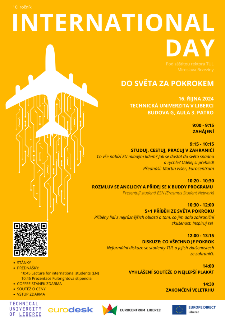 Přemýšlíte o studiu, práci nebo stáži v zahraničí? Rádi byste dosáhli na zajímavá stipendia, ale nejste si jistí, zda je zahraniční zkušenost právě pro Vás? Není proč váhat! ve středu se na Technické univerzitě v Liberci opět koná International Day! Dozvíte se více o studijních pobytech a stážích v Evropě a také o osvojování cizích jazyků a získávání zkušeností.