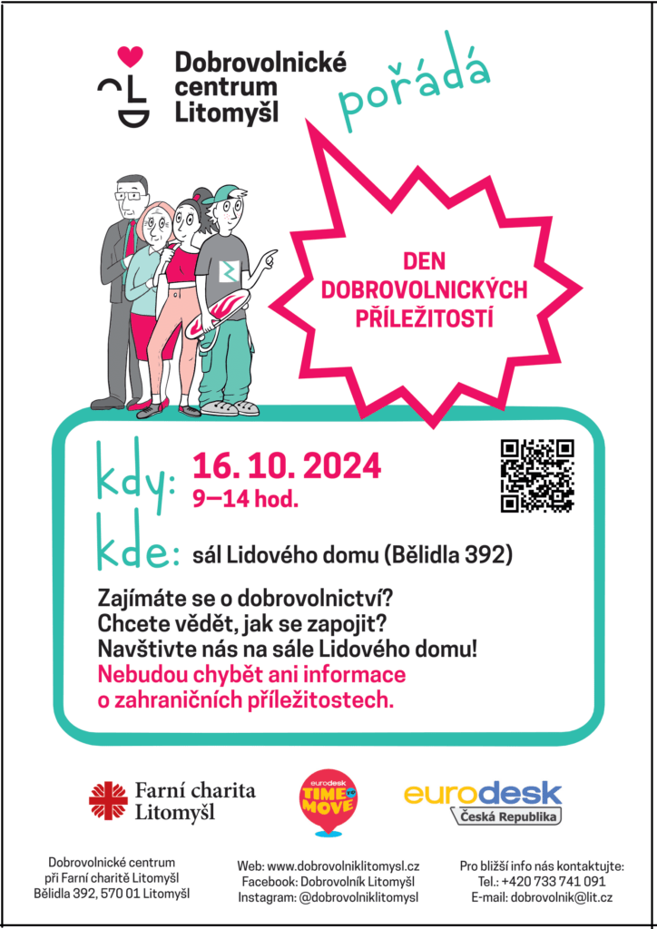 Dozvíte se také o zahraničních příležitostech, které mají mladí lidé od 13-30 let a které jsou hrazené z prostředků Evropské unie! Zde se představí také Eurocentrum Pardubice se svými aktivitami o Evropě pro všechny zájemce, přičemž připraven bude rovněž soutěžní Actionbound Pár kroků do Evropy o cenné odměny kampaně Time To Move 2024, jež má za cíl informovat o evropských mobilitách.