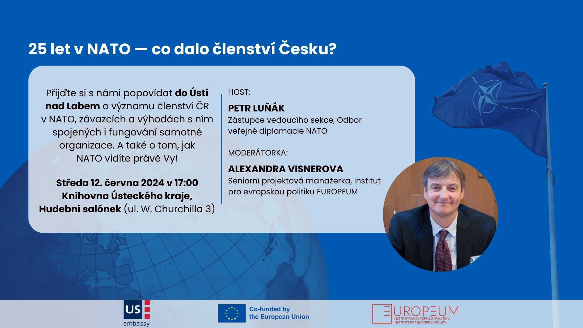 „Členství přineslo Česku výhody, je ale zároveň spojené s řadou závazků. Jaký význam má pro nás tato aliance? a co si o NATO myslíte vy? Přijďte si s námi o těchto a dalších otázkách popovídat i do Ústí!“