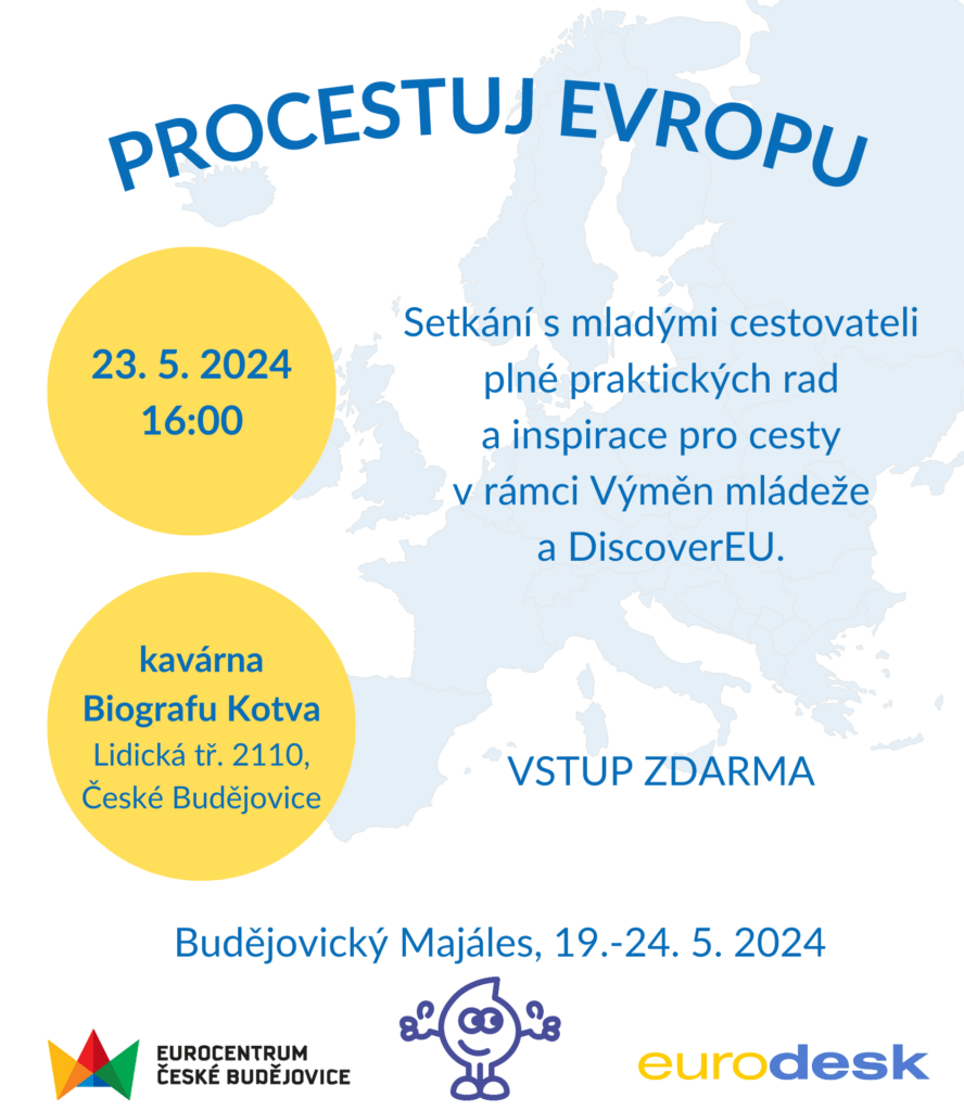 Přijďte si poslechnout zážitky mladých cestovatelů, Ivety a Honzy, kteří využili programů Evropské unie a s minimálními náklady se vydali do evropských států. Načerpejte inspiraci a poslechněte si praktické rady těch, kteří se zúčastnili výměn mládeže a procestovali Evropu díky soutěži DiscoverEU. Akci spoluorganizuje Eurocentrum České Budějovice.