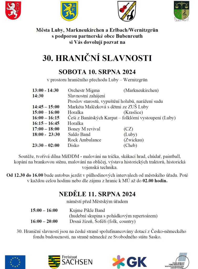 Již 30 let se konají lidové slavnosti na hranici mezi Českou republikou a Saskem přímo na silnici mezi obcemi Luby a Wernitzgrün. v sobotu od 14 hodin začíná lidová slavnost se zábavou pro velké i malé, lokálními potravinami a hudbou a tancem.