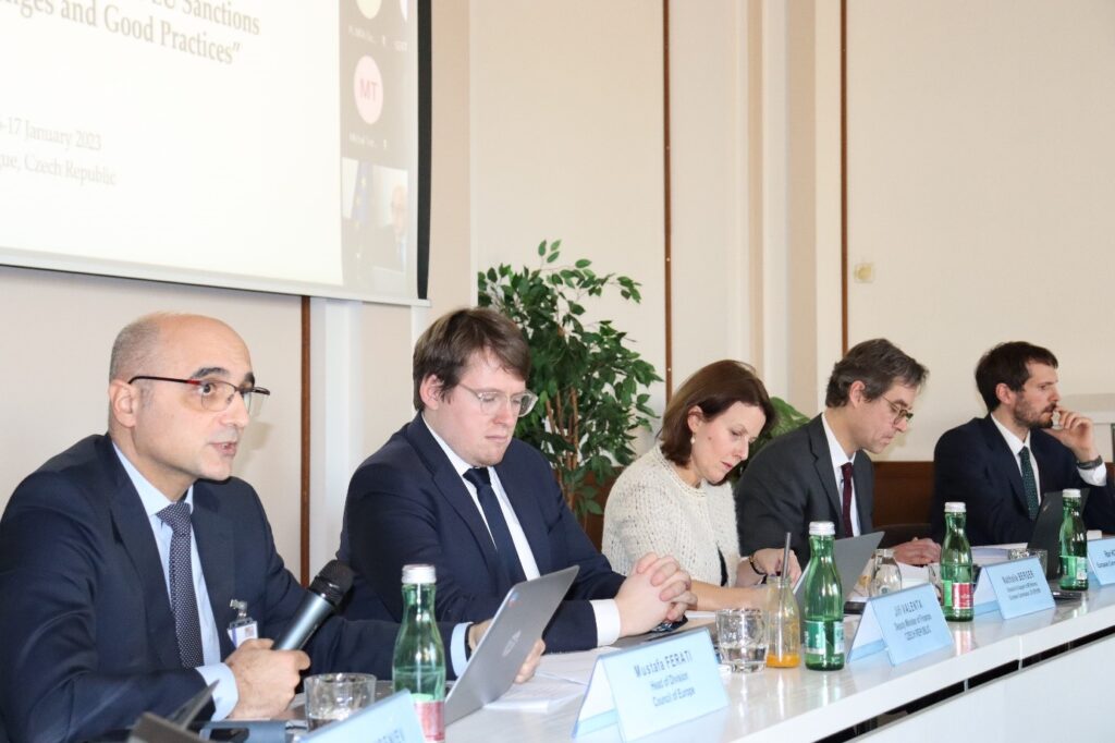 S. Tresguerres Gonzáles prezentuje španělský model provádění sankčních režimů EU na pražské konferenci.