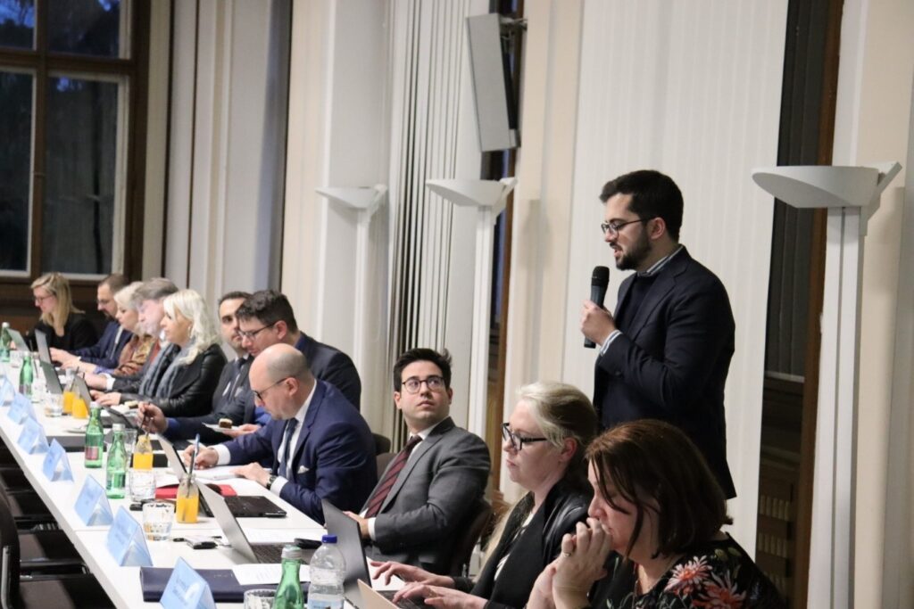 Zleva: M. Ferati, vedoucí oddělení hospodářské kriminality a spolupráce Rady Evropy; J. Valenta náměstek ministra financí ČR; N. Berger, ředitelka pro podporu reforem členských států GŘ REFORM, a dva experti Evropské komise na konferenci pořádané v rámci projektu v lednu 2023 v Praze.