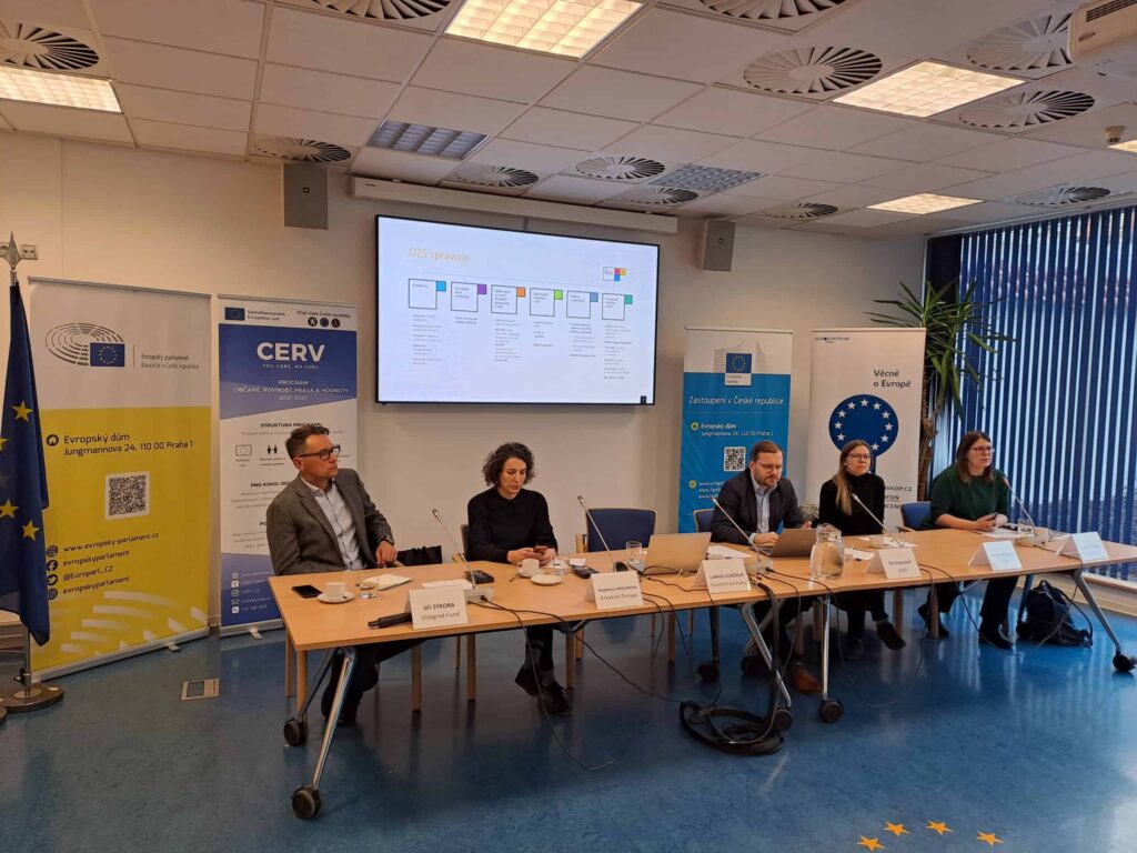 Včera proběhl v Evropském domě seminář na téma Podpora projektů občanské společnosti, který organizovalo Oddělení evropských programů a fondů Úřadu vlády České republiky a Eurocentrum Praha. Cílem semináře bylo představení projektů a grantů nejen Evropské unie. Představen byl také projekt Visegrad Fund šéfem kabinetu Jiřím Sýkorou a Kreativní Evropa vedoucí Kanceláře Magdalenou Müllerovou. Erasmus+ zastupovala Lucie Rychlá z Domu zahraniční spolupráce a za CERV se dostavili Kateřina Hamplová a Vít Kratochvíl.
