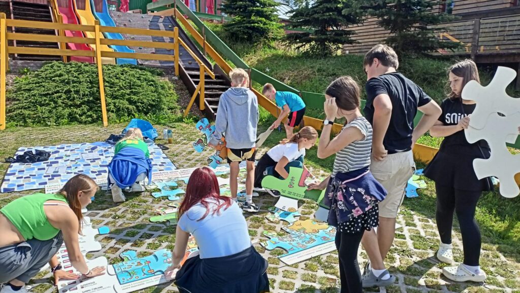Během letních prázdnin nezahálíme, ale tradičně navštěvujeme různé dětské příměstské tábory se zábavně vzdělávacími aktivitami o Evropské unii. Kromě Karlových Varů navštěvujeme i jiná místa v kraji jako Bečov, Kraslice, Boží Dar nebo Novou Roli. S některými pořadateli se setkáváme dokonce opakovaně. Dětem na táborech nevadí, když kromě výletů a sportování zapojí i své hlavičky a řeší s námi různé kvízy. Když máme dost místa, skládají s oblibou velké puzzle Evropy a na složené mapě luští symboly jednotlivých evropských států. Skládání puzzlí bývá velkou zkouškou týmové spolupráce. Kdo nespolupracuje, tomu trvá složení třeba i přes dvacet minut. Ti, co si úkoly rozdělí a jdou na to systematicky, mívají složeno za pár minut.