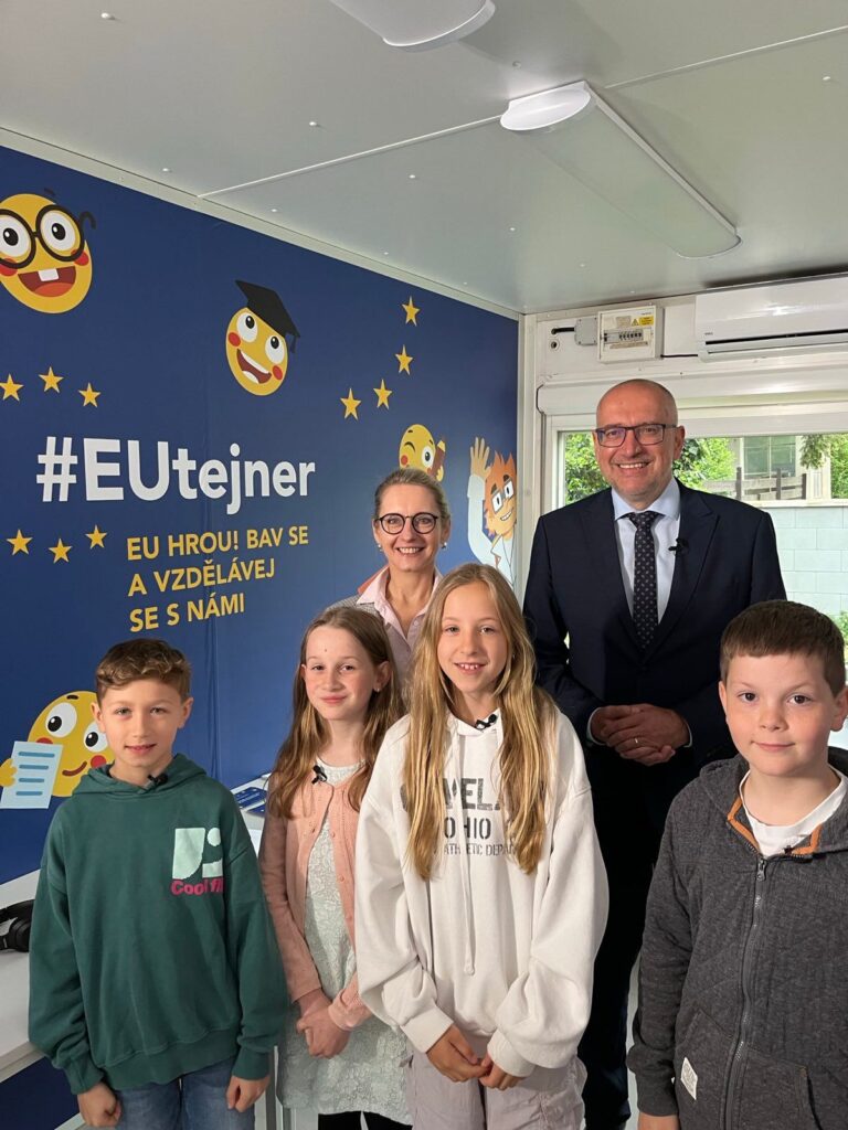Zastoupení Evropské komise v pondělí představilo nový vzdělávací projekt EUtejner. v zahradě Základní školy Hanspaulka v Praze 6 zaparkoval unikátní edukativní kontejner, který žákům zábavnou formou přibližuje fungování Evropské unie. Kontejner bude odtud putovat po českých školách a příště tak může přijet třeba i k vám!