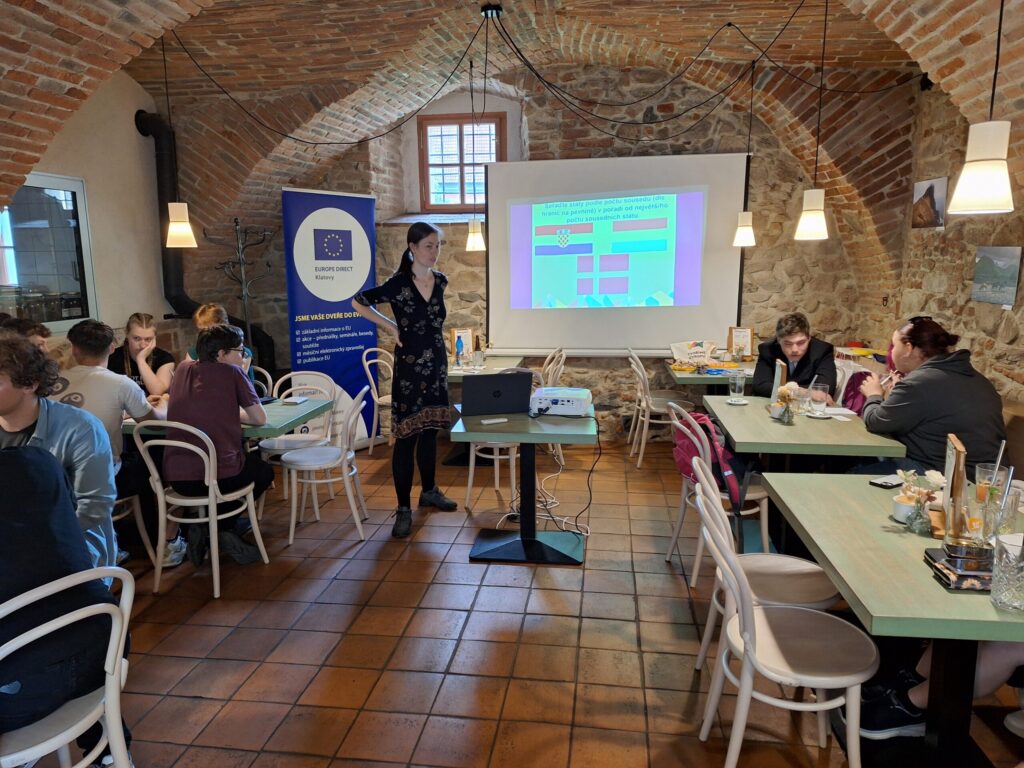 Na evropském pub kvízu „Masters of Evropa“ v Klatovech, který jsme uspořádali první červnové úterý společně s Europe Direct Klatovy v bistru ZRNO, se utkalo celkem 5 týmů ze 3 klatovských středních škol. Čelily okruhům otázek zejména o evropské kultuře a cestování, ale i záludným otázkám o Polsku, právě předsedajícím EU. Stejné eurokvízy „Masters of Evropa“ jsme pak za Eurocentrum Plzeň uskutečnili ke konci školního roku přímo na několika středních školách.