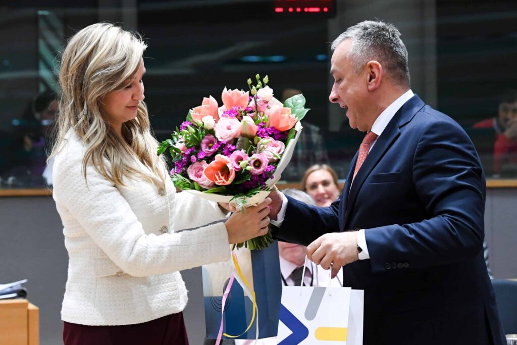Foto: Český ministr průmyslu a obchodu Jozef Síkela na poslední Radě pro dopravu, telekomunikace a energetiku pod českým předsednictvím předává pomyslnou štafetu ve vedení této formace Rady švédské ministryni Ebbě Buschové. Zdroj: Rada EU